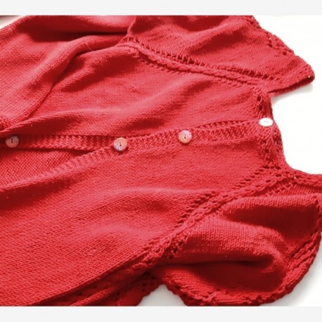 La Chaqueta Cereixa está tejida de una pieza, sin costuras y de arriba a abajo en pasadas de ida y vuelta. El ranglan tiene un motivo calado sencillo de 4 vueltas y las mangas llevan otro calado sencillo, lo que les da un toque divertido y ameno.