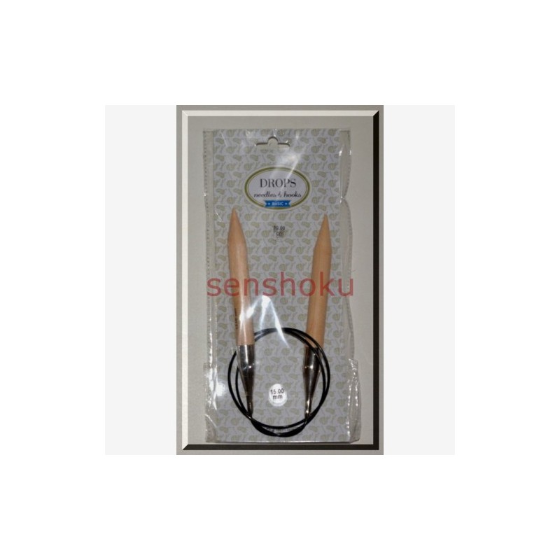 Agulhas circulares fixas de 15mm/80cm DROPS BASIC. De madeira de bétula.