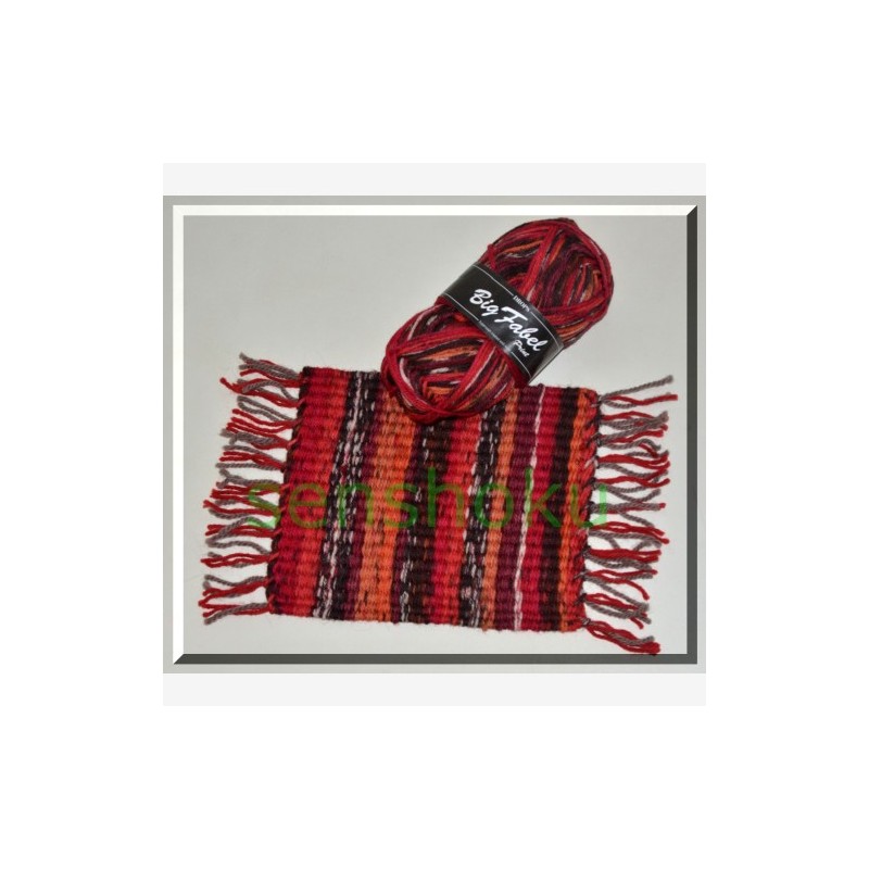 Mostrado na imagem uma pequena tapeçaria tecida neste tear com Big Fabel mostrado na imagem.