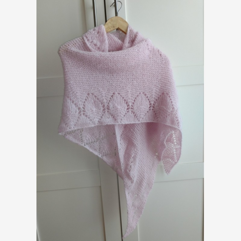 El chal de las fotos está realizado con el color 12 - rosado polvo, puedes utilizar cualquiera de los colores de Brushed Alpaca Silk o realizarlo con otro hilo si lo deseas (ten en cuenta las características del hilo utilizado).