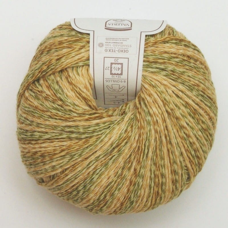 WoolCo de Valeria Lanas, hilo muy suave mezcla de algodón y lana, con unos colores tweed espectaculares. Para aguja de 4-5mm..